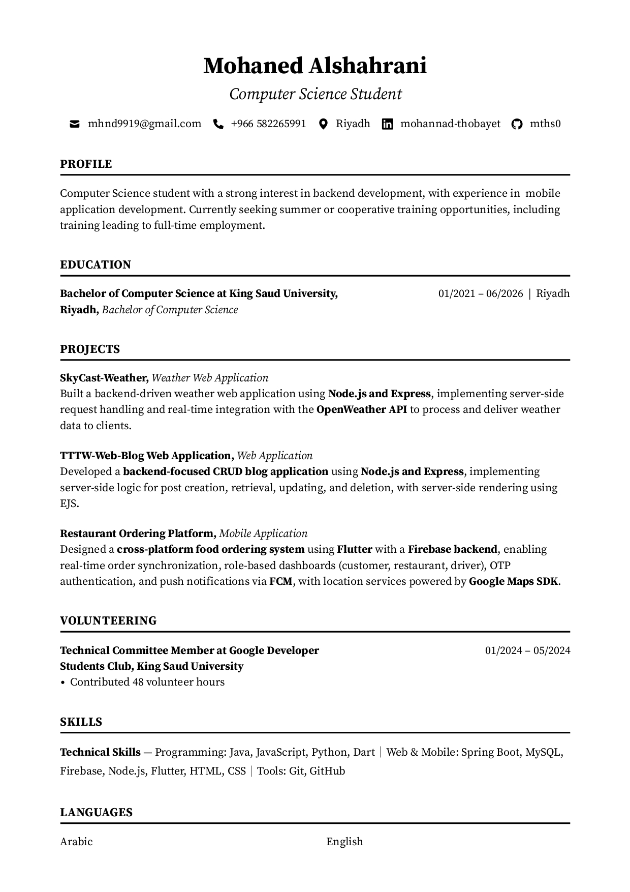 Computer Science student focused on backend development and scalable systems. Seeking summer or cooperative training opportunities.